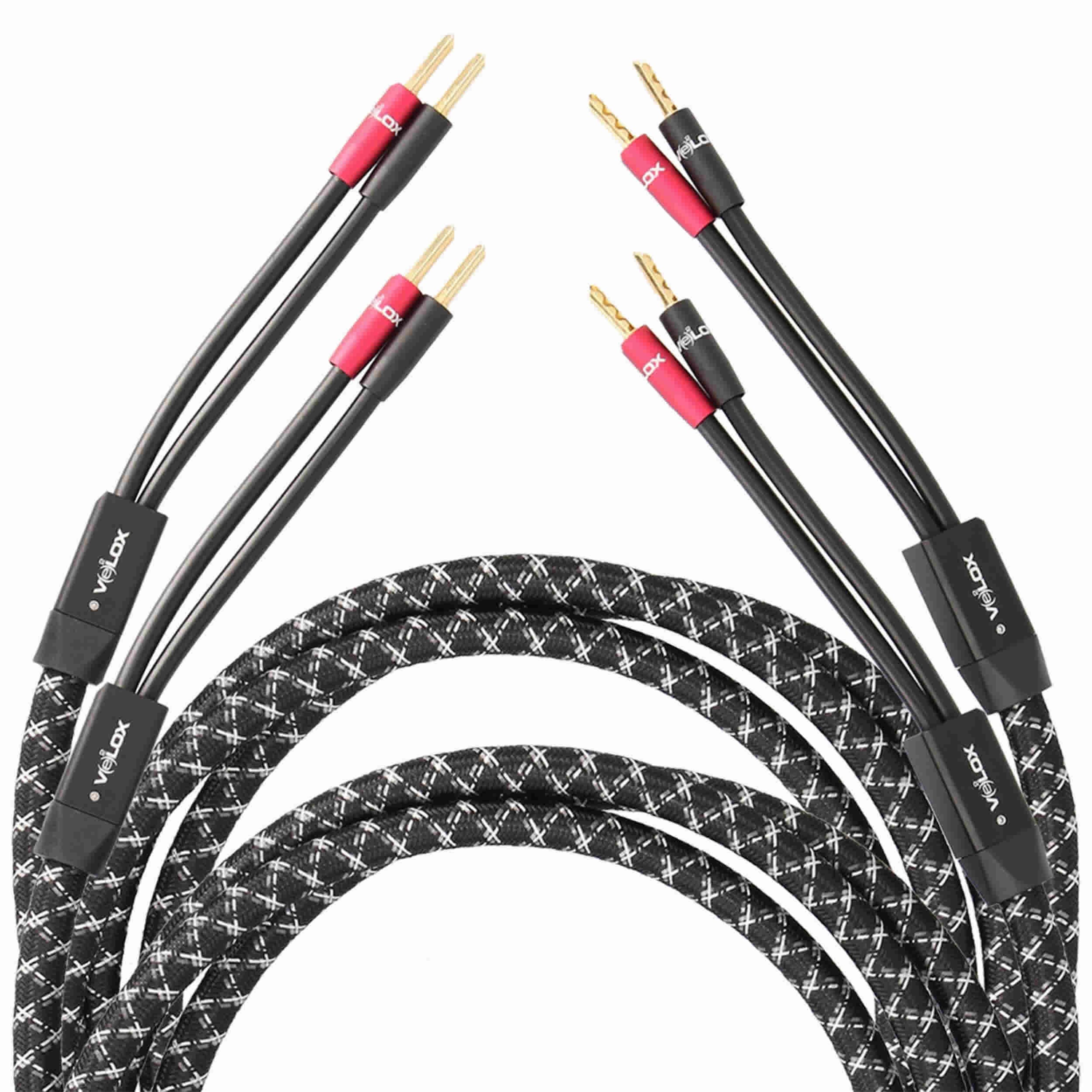 Audiophiles can plug into a better AV experience with HiFi cables that sound as good as they look. Velox once again proves that what’s on the inside is just as important as its great aesthetics on the outside. Using only the finest materials and construction, these 12 gauge cables deliver the purest undegraded sound possible to your speakers. They feature high purity oxygen-free copper with hundreds of tightly woven solid-core conductors for excellent conductivity. To allow better flexibility, cotton paper separates the PVC jacket and conductors and cotton yarn supports the twist shape design. The low-density polyethylene insulation for each conductor avoids adding bulk, allowing the woven, flexible outer jacket to protect the cable from wear and tear without making it too stiff for installation. The BFA terminations allow a greater surface area between the cable and the terminal and are 24K gold plated with anodized aluminum terminals.