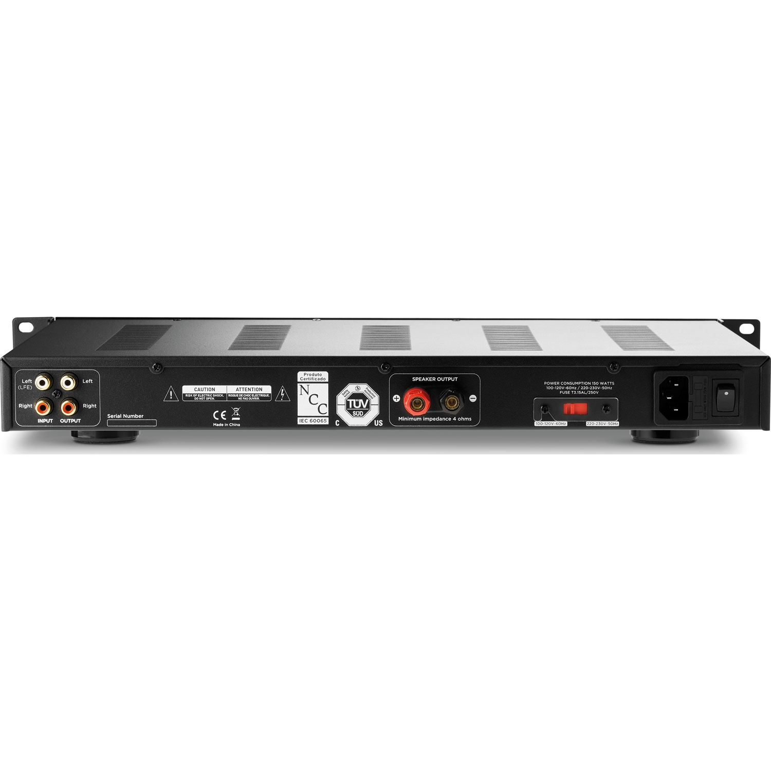- Peak power: 200W (continuous power : 150W under 4Ώ).