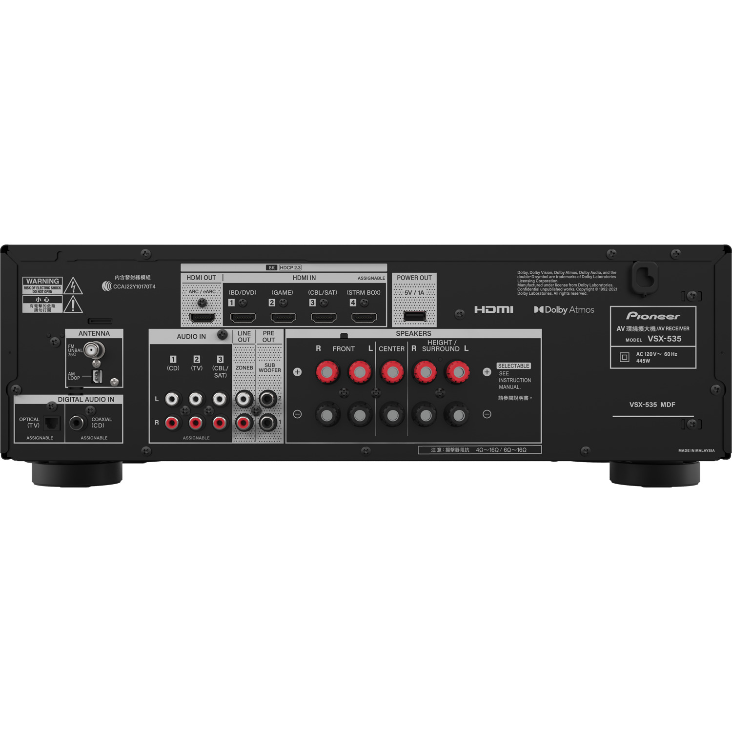 Engineered with the newest technology for streamers and home theater buffs, the VSX-535 supports Dolby Atmos® capabilities, 8K/4K Ultra HD, Bluetooth® streaming and more. Elevate your shows, games and films with amazing performance in speaker configurations up to a 5.2 or 3.2.2 setup, perfectly calibrated to your space with our proprietary MCACC Auto Room Tuning software.