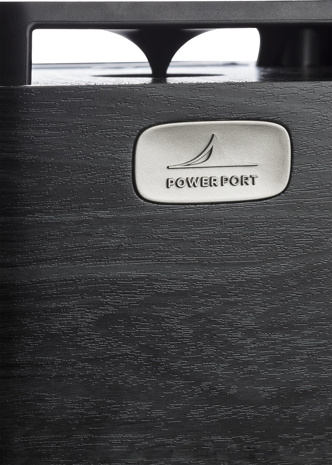 Power Port® is our patented design that smoothly transitions the air flow from the speaker’s port into your listening area. It also extends the overall bass port, providing greater surface area to eliminate turbulence and distortion, for bigger, more musical, deep bass impact. Plus, it offers 3dB more bass response output than a traditional port.