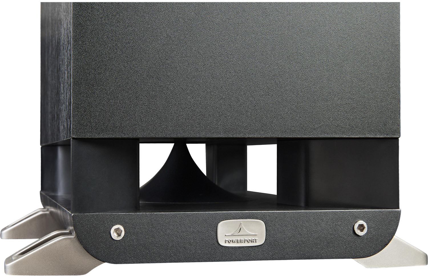 Power Port® is our patented design that smoothly transitions the air flow from the speaker’s port into your listening area. It also extends the overall bass port, providing greater surface area to eliminate turbulence and distortion, for bigger, more musical, deep bass impact. Plus, it offers 3dB more bass response output than a traditional port.